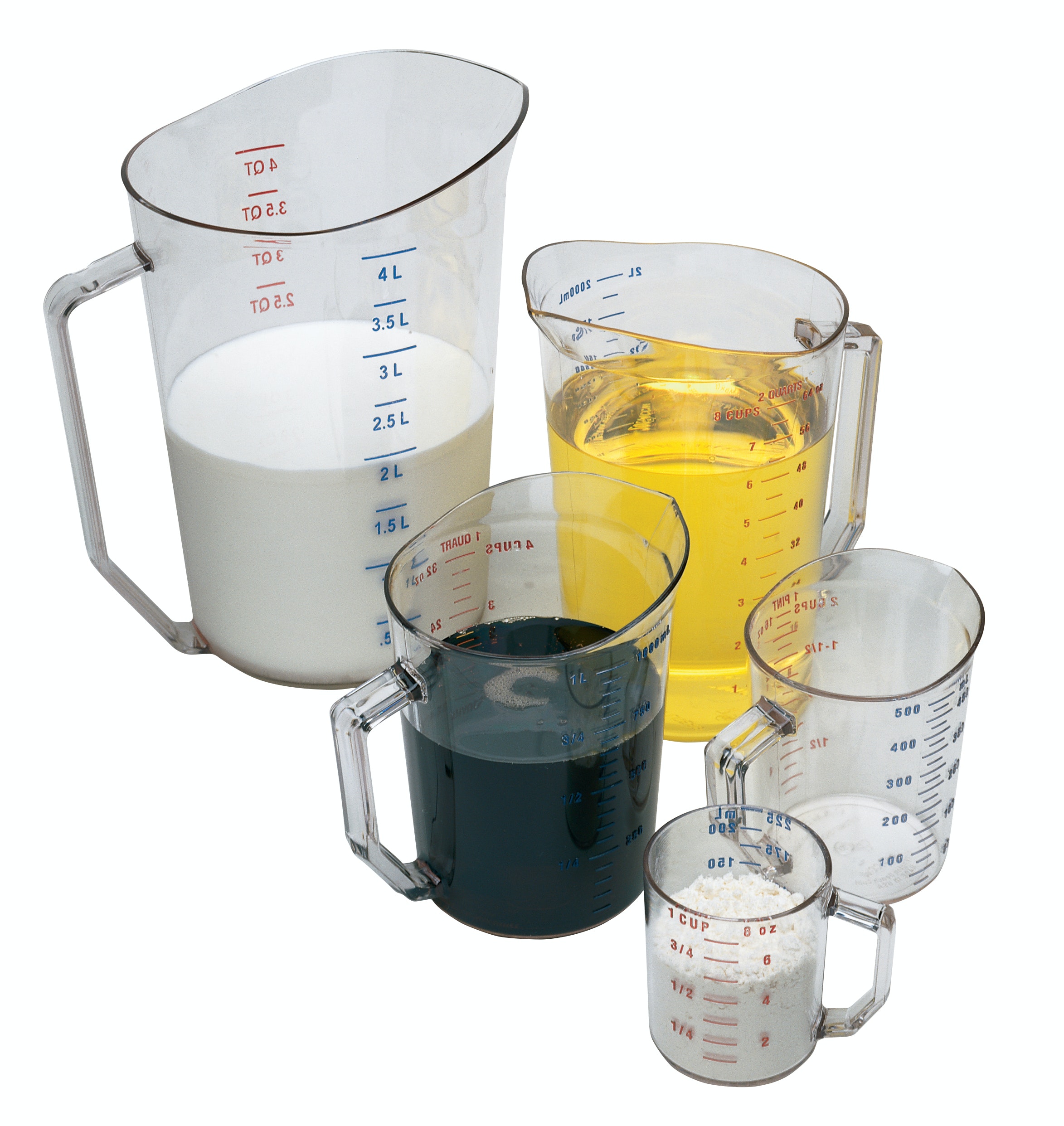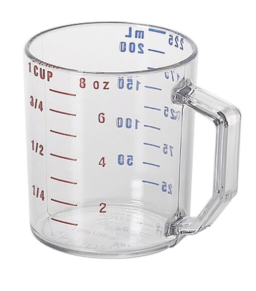 Introduce a new level of accuracy and efficiency to your kitchen with the virtually unbreakable Camwear® Measuring Cups! This crystal-clear design is marked with blue metric and red American standard graduations, saving time and ingredients in the fastest paced environments. Withstands acids, stains, and odors for reliable service, and won’t dent like metal. Personalization is available for additional food safety options. Molded in handles are as durable as the cup, ensuring safe carrying. Camwear® Measuring Cups are the industry leading way to reduce risk of contamination, enhancing food safety and ease in the kitchen!